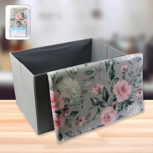 Premium Foldable Storage Box With Floral Lid (1 Pc)