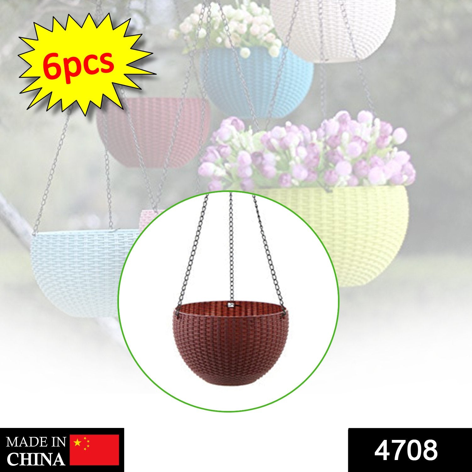 The hanging pot constructed with attractive woven look and texture that's remarkably similar to real rattan, classic style round planter easily hanging around and can make a great addition to any part of your home The hanging basket is environmental protection and healthy.Perfect for your patio, front porch, balcony or inside your home.Bring a green living to your home